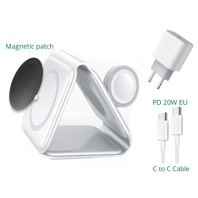 Foldable 3-in-1 wireless chargerThe most convenient way to keep all your devices charged and ready to go. This versatile charger can charge your iPhone, Apple Watch, and AirPods all at the same time, so you'll never have to worry about being caught without a charge again.The sleek and compact design...